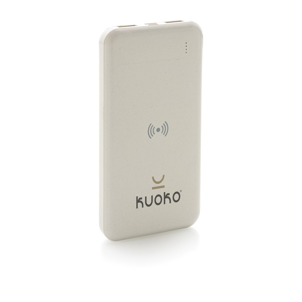 8.000 mAh powerbank met 5W draadloze oplader waarbij de behuizing is gemaakt van RCS-gecertificeerd gerecycled ABS-plastic. RCS (Recycled Claim Standard) is een norm om de gerecyclede materialen van een product in de hele toeleveringsketen te verifiëren. RCS is de standaard die wordt gebruikt wanneer een deel van het artikel is gemaakt van gerecyclede materialen. Als de powerbank volledig is opgeladen, heeft u genoeg energie om uw mobiele telefoon tot vier keer op te laden. De powerbank bevat een duurzame A kwaliteit 8.000 mAh lithium-polymeer batterij. De stroomindicatoren geven het resterende energieniveau aan, zodat u altijd weet wanneer u moet opladen. Type-C-input 5V/2A; Micro-USB-input 5V/2A; Draadloze output 5W; 2x USB-input: 5V/2A; Artikel en accessoires PVC vrij. Inclusief PVC-vrije oplaadkabel van gerecycled TPE-materiaal