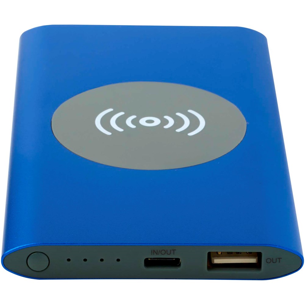 Powerbank met Type-C in/uitgangspoort en een USB-A-poort waardoor twee apparaten tegelijk kunnen worden opgeladen. Het ondersteunt ook 5 W draadloos opladen voor alle apparaten met Qi. De powerbank heeft een 4000 mAh lithium-polymeerbatterij die een totaal uitgangsvermogen levert van max. 10 W. Deze powerbank is gemaakt van 28% RCS gecertificeerd gerecycled plastic. Geleverd met een TPE Type-C naar USB-A-oplaadkabel.